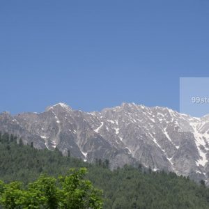 Stock Photo of Green Trees with Snowy Mountain