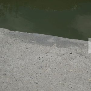 Stock Photo of Green Water of Lake and Concrete Slab