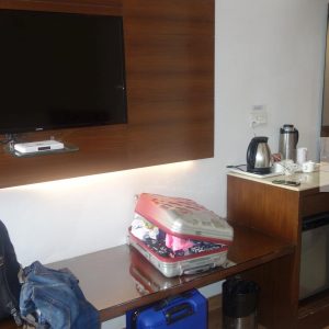 Stock Photo of Hotel Room of Tourist with Luggage Spreadover