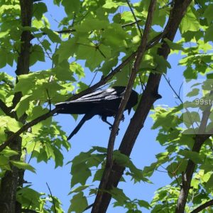 Stock Photo of Raven Crow on a Maple Tree with Blue Sky