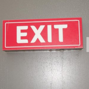 Stock Photo of Red and White Exit Signage on a Wall