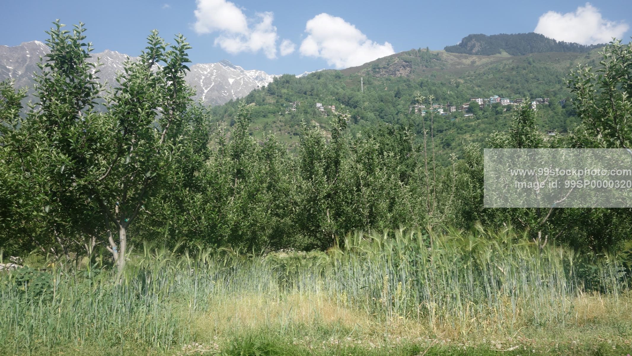 Stock Photo of Apple Tree with background of Snowy hills Type 2