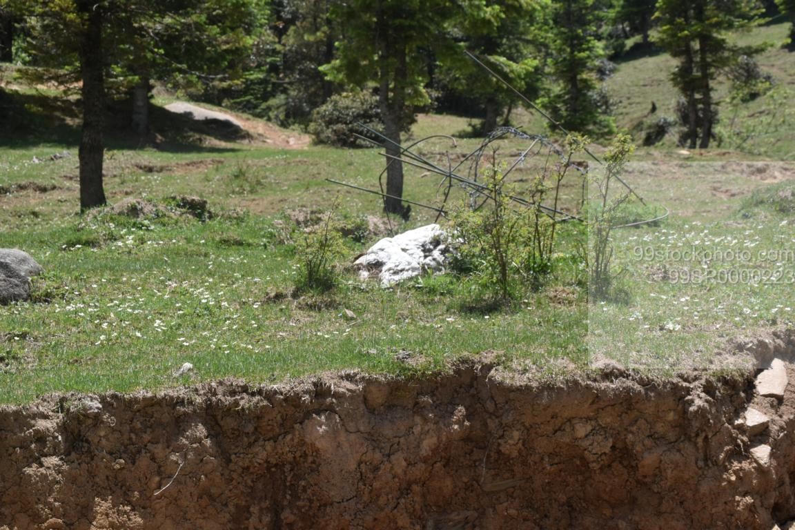Stock Photo of Ice, Green Pastures and mud