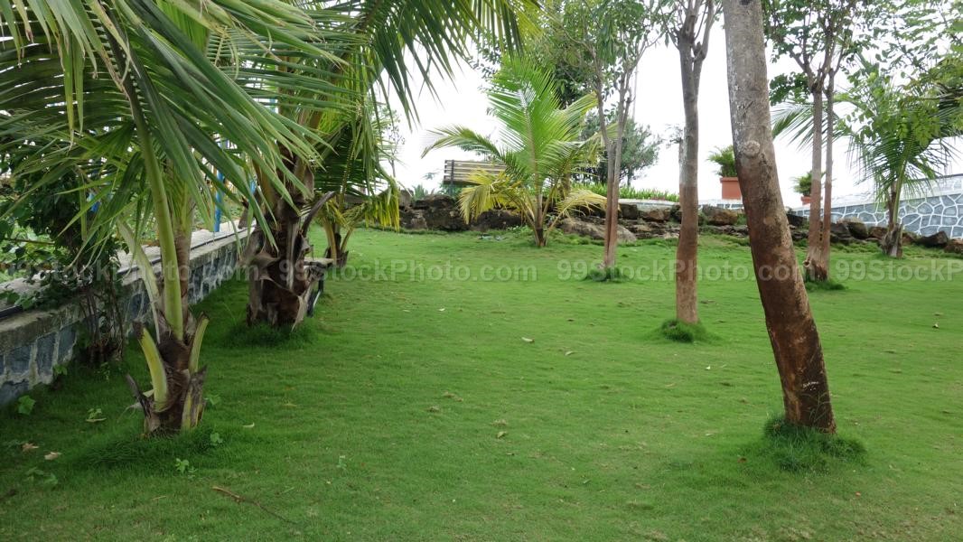 Stock Photo of Lush Green Garden and Trees