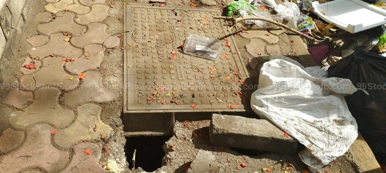 Stock Photo of Man hole and Garbage