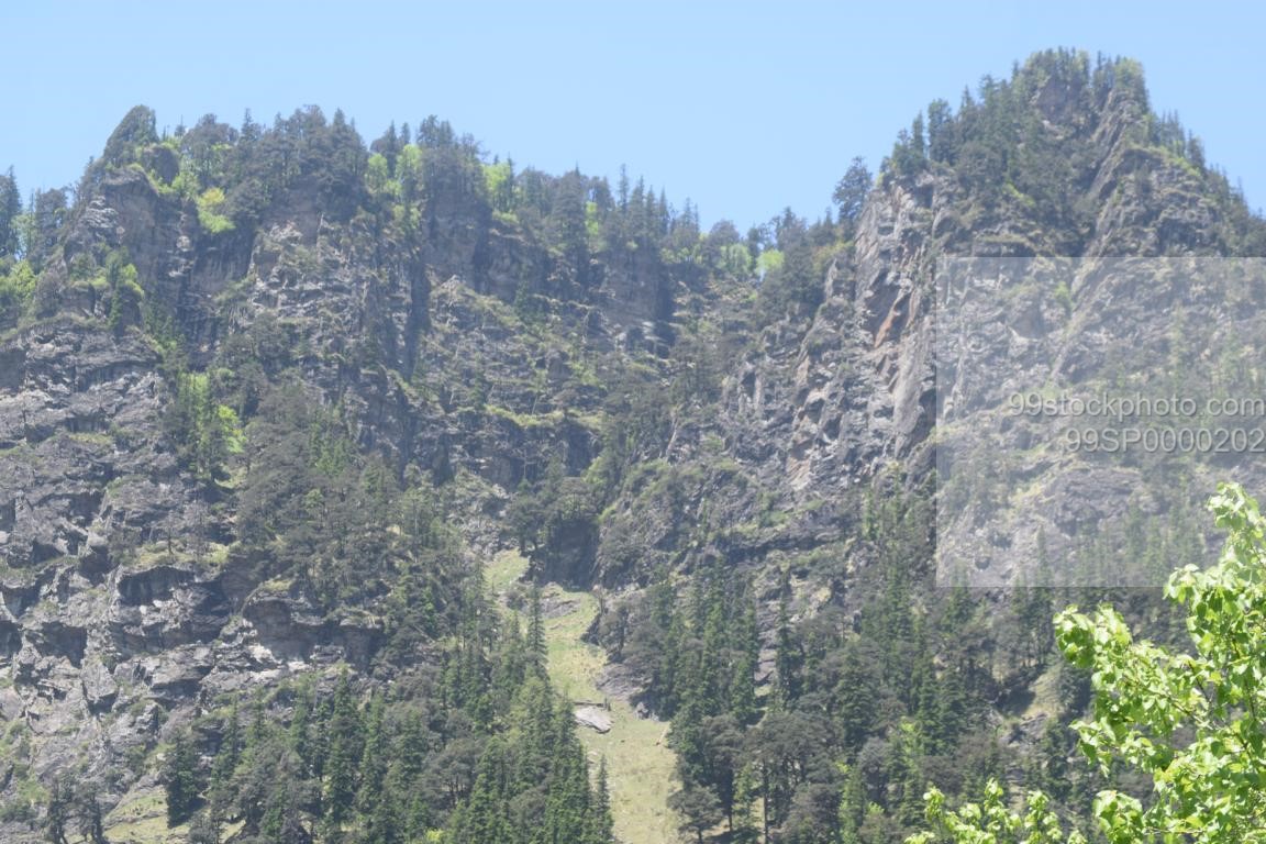 Stock Photo of Pin, Hilly Mountains and Maple Tree