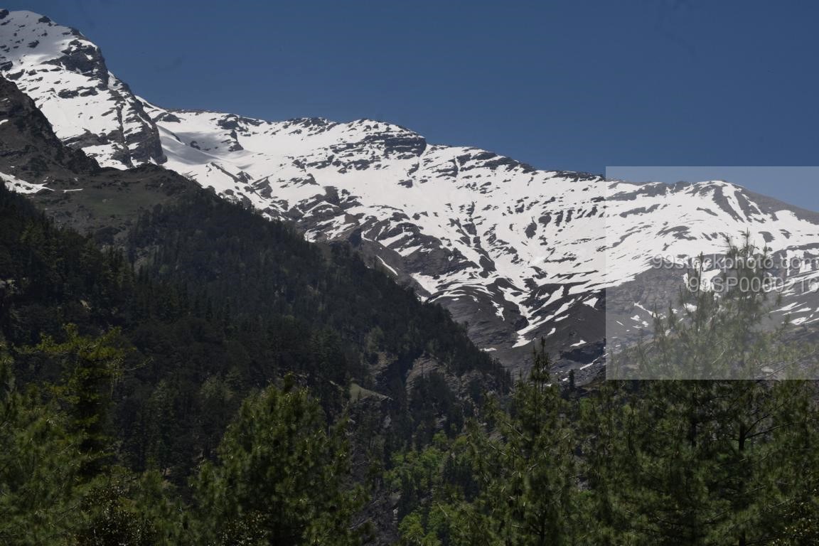 Stock Photo of Pine Strees Snow Hilly Mountains