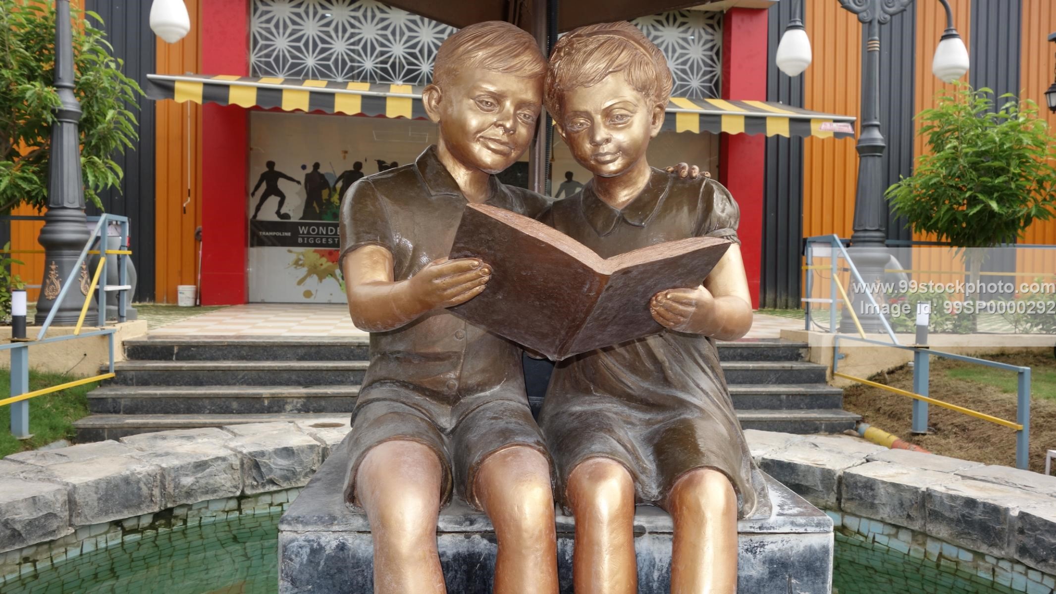 Stock Photo of Statue of two Kids reading book in Park