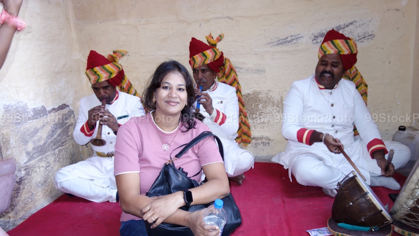 Stock Photo of Tourist with Folk Singers in Mehrangarh Fort Jodhpur