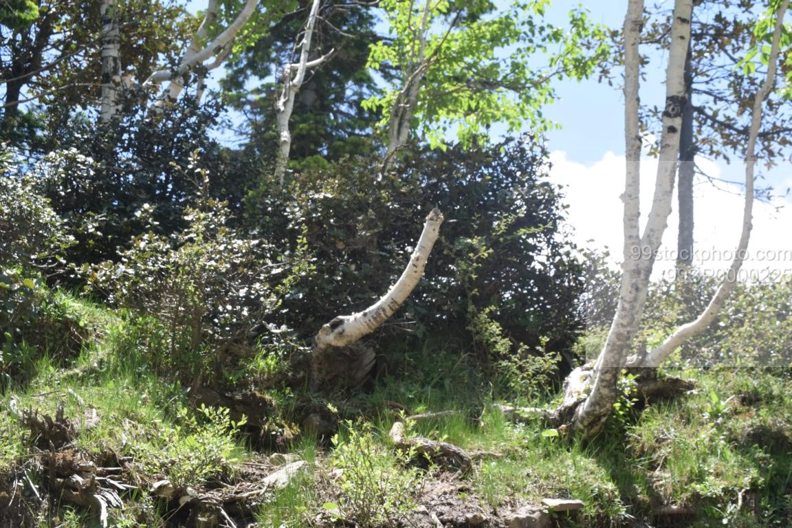 Stock Photo of Tree, Shrubs, and Blue Sky