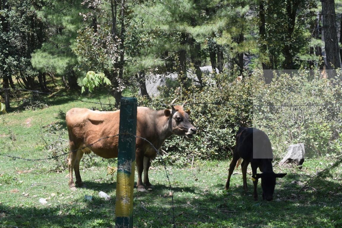 Stock Photo of Two Cow in a Hilly Area with Fencing